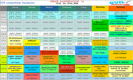 SENDEPLAN FÜR DIE KALENDERWOCHE 16 / 2026 (SVR Hanseradio ... inkl. 180grad.fm)