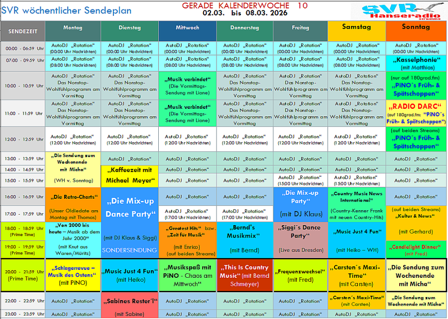SENDEPLAN FÜR DIE KALENDERWOCHE 10 / 2026 (SVR Hanseradio ... inkl. 180grad.fm)